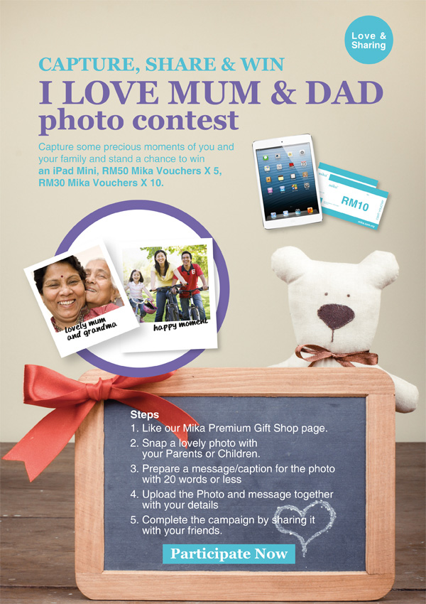 Join Mika I Love Mum & Dad contest to own it for FREE! All you have to do is creatively show loving moments on a snapshot& enter the contest NOW!