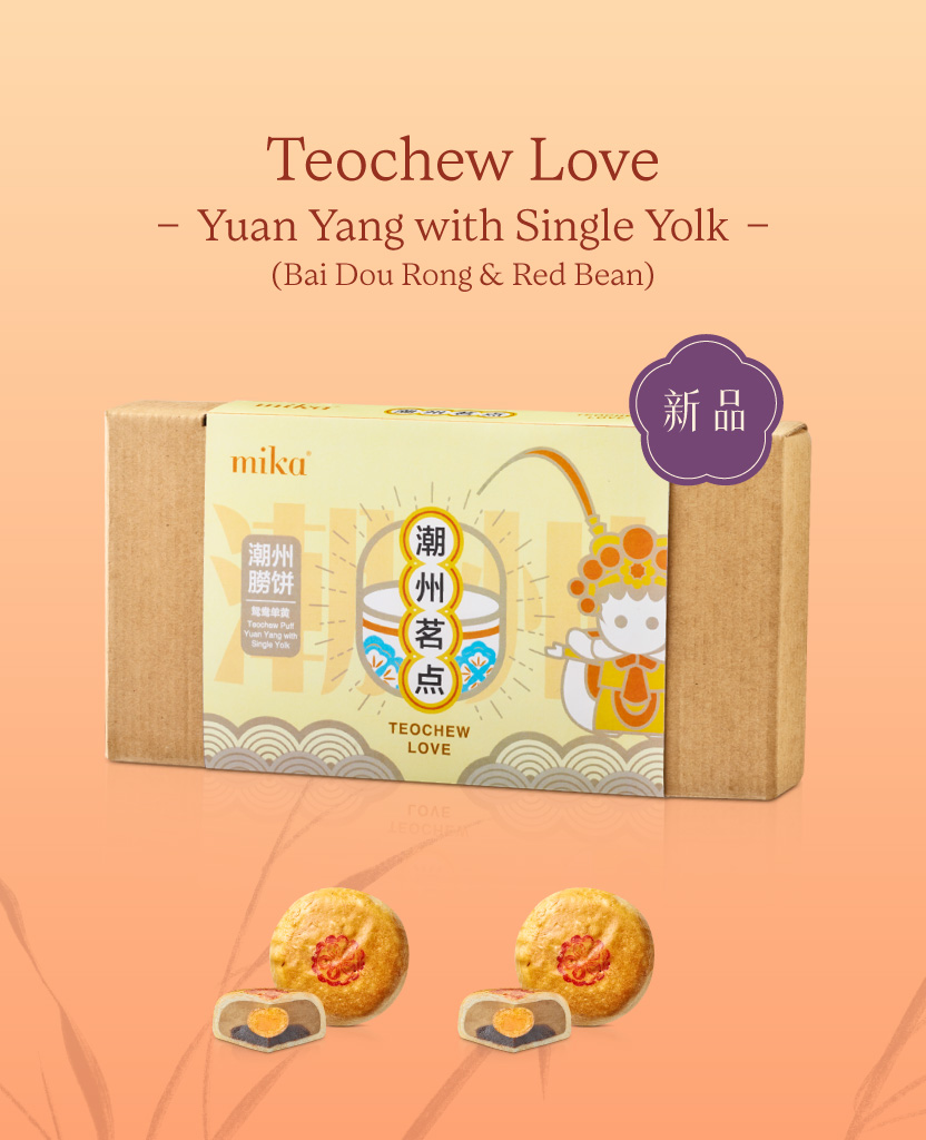- 鸳鸯单黄潮州朥饼 (白豆蓉 + 红豆)Teochew Puff – Yuan Yang with Single Yolk (Bai Dou Rong + Red Bean) 200g, 2pcs
